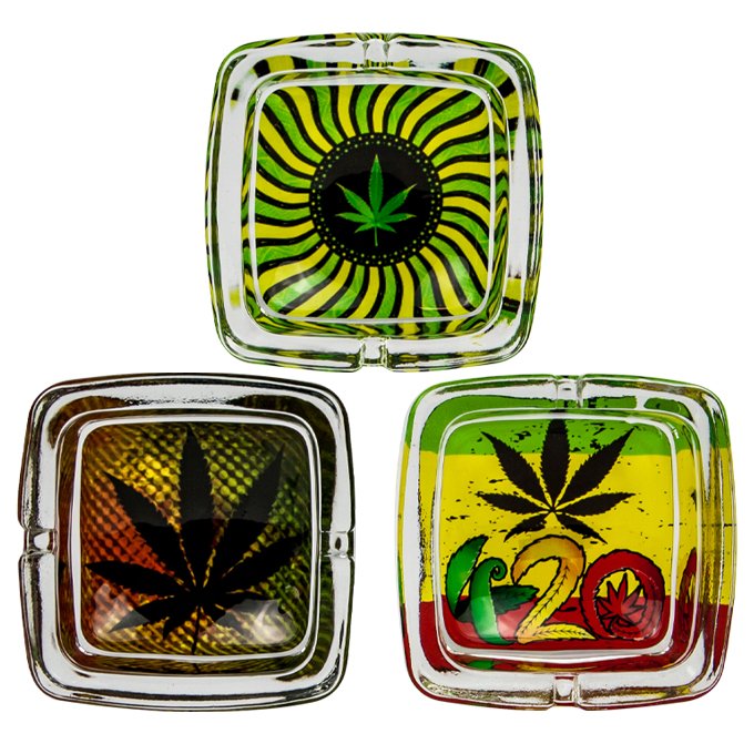Cenicero De Vidrio cuadrado Hojas ASH205