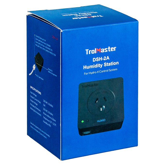Los módulos de control/dispositivo de humedad TrolMaster DSH-2 permiten conectar y controlar fácilmente dispositivos de humidificación o deshumidificación estándar al Hydro-x. Este módulo permite controlar cualquier dispositivo de humidificación o deshumidificación con voltaje estándar (100-240 VCA, 50/60 Hz), hasta 10 amperios. *Utilícelo con deshumidificadores que consuman menos de 7 amperios para evitar sobrecargas.